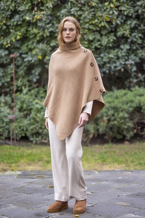 Mantella donna in maglia con collo alto e bottoni