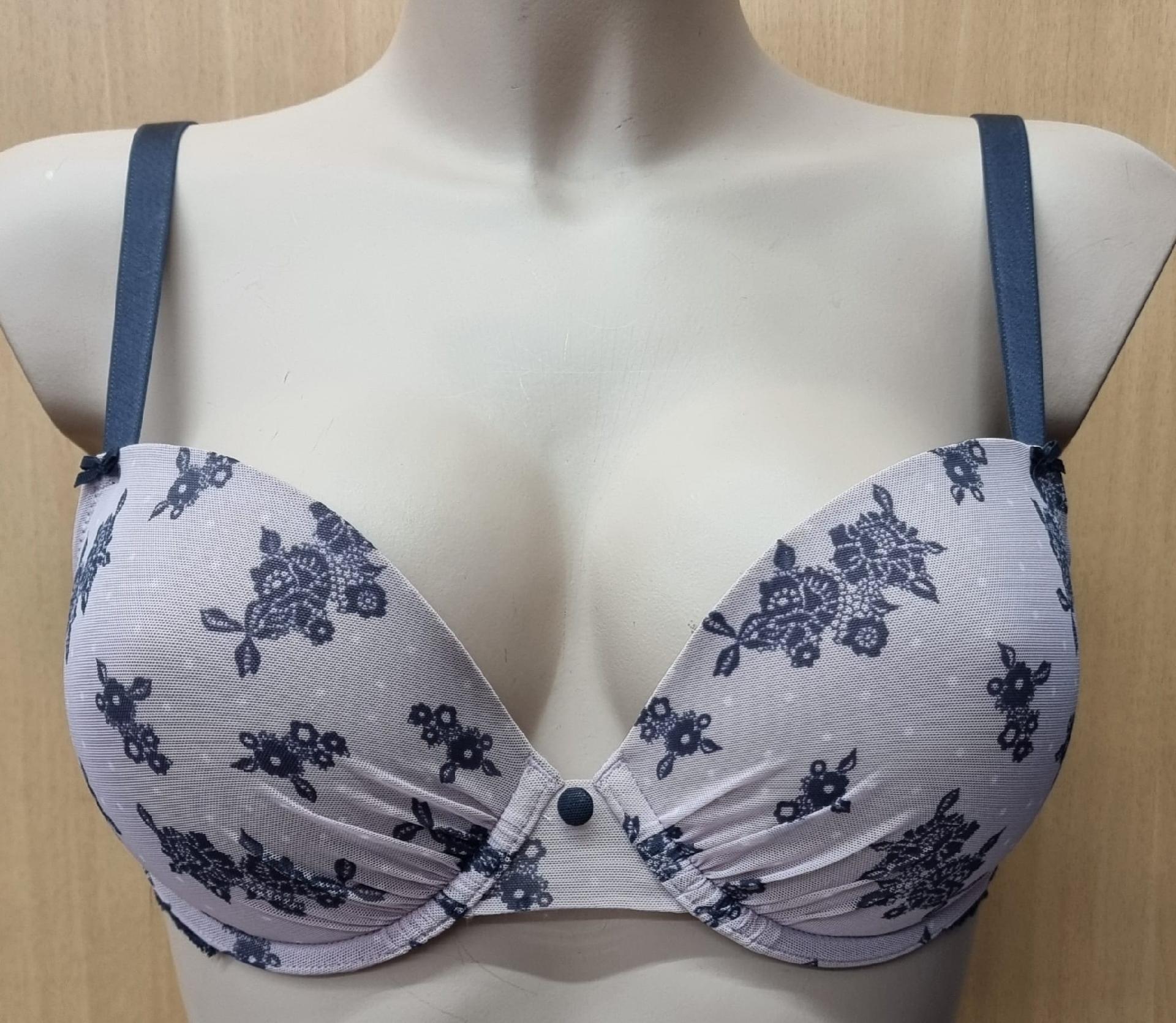Reggiseno push up in tulle con stampa floreale. Questo reggiseno è dotato di spalline che si possono incrociare dietro.