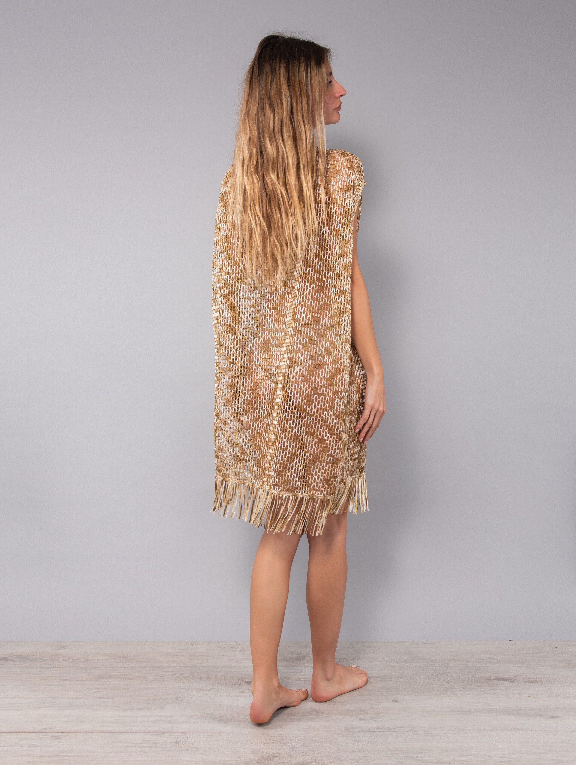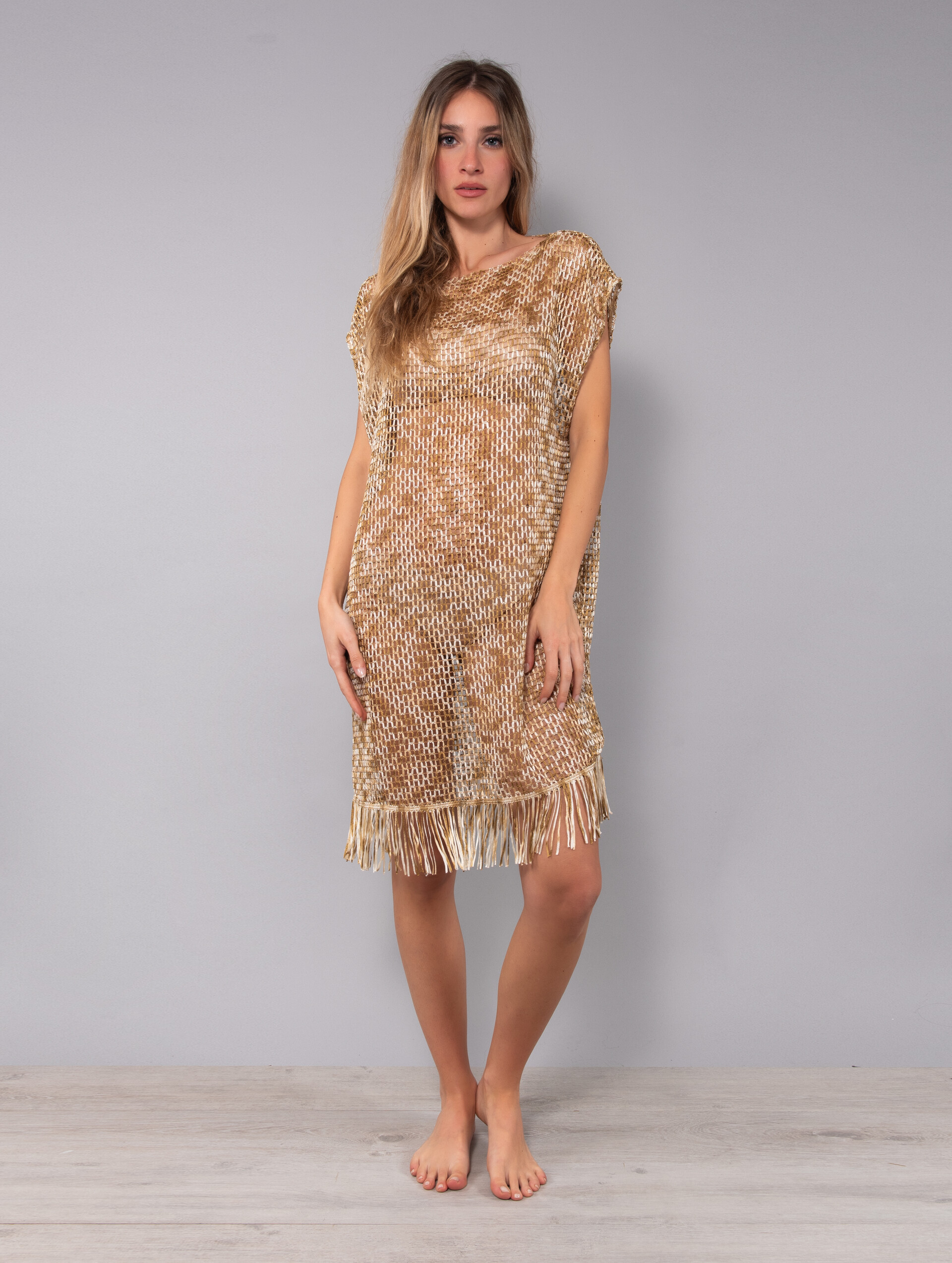 Rendi la tua estate indimenticabile con l'Abito Corto Verdissima, il capo iconico che non può mancare nella tua collezione di moda mare. Molto più di un semplice vestito mare, questo capo è il copricostume perfetto per chi cerca uno stile audace e sofisticato. Il suo design effetto rete, sensuale e di tendenza, si abbina magnificamente a dinamiche frange che danzano a ogni tuo passo. Ideale per passare con disinvoltura da una giornata di sole a un aperitivo al tramonto, questo abito estivo firmato Verdissima è la scelta vincente per un look da spiaggia che non passa inosservato. Indossalo per sentirti unica e valorizzare la tua femminilità: un abito corto donna che è pura espressione di stile.