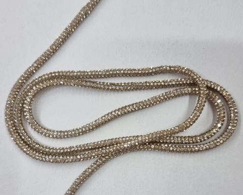 Passamaneria tubolare ricoperta di strass per abbigliamento (abiti eleganti) e accessori( borse, scarpe, cinture), diametro 3 mm.