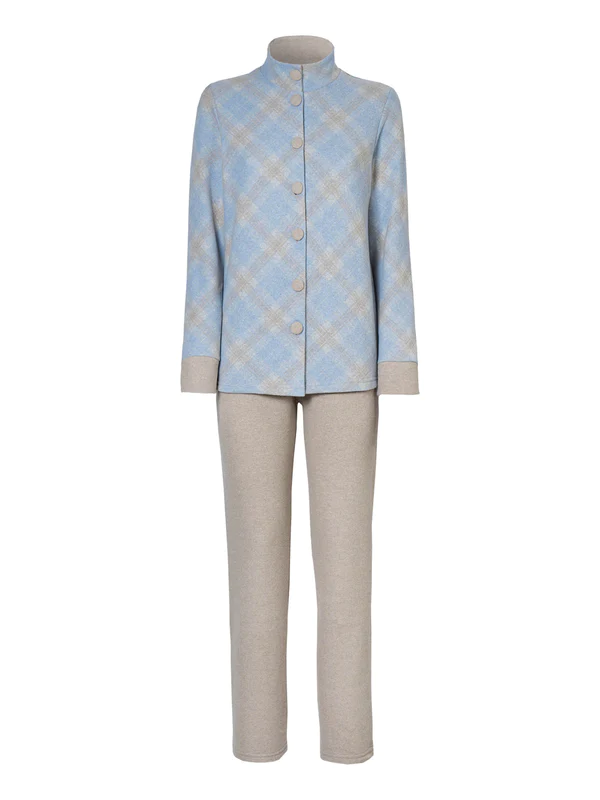 - Casacca aperta con collo alto in stampa check, chiusura con bottoni e polsini per una maggiore comodità