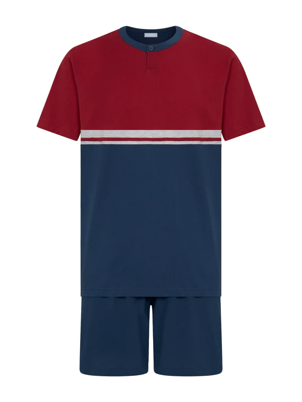 Il nostro pigiama da uomo corto a serafino in jersey di cotone al 100% è la scelta perfetta per chi cerca comfort e stile.
